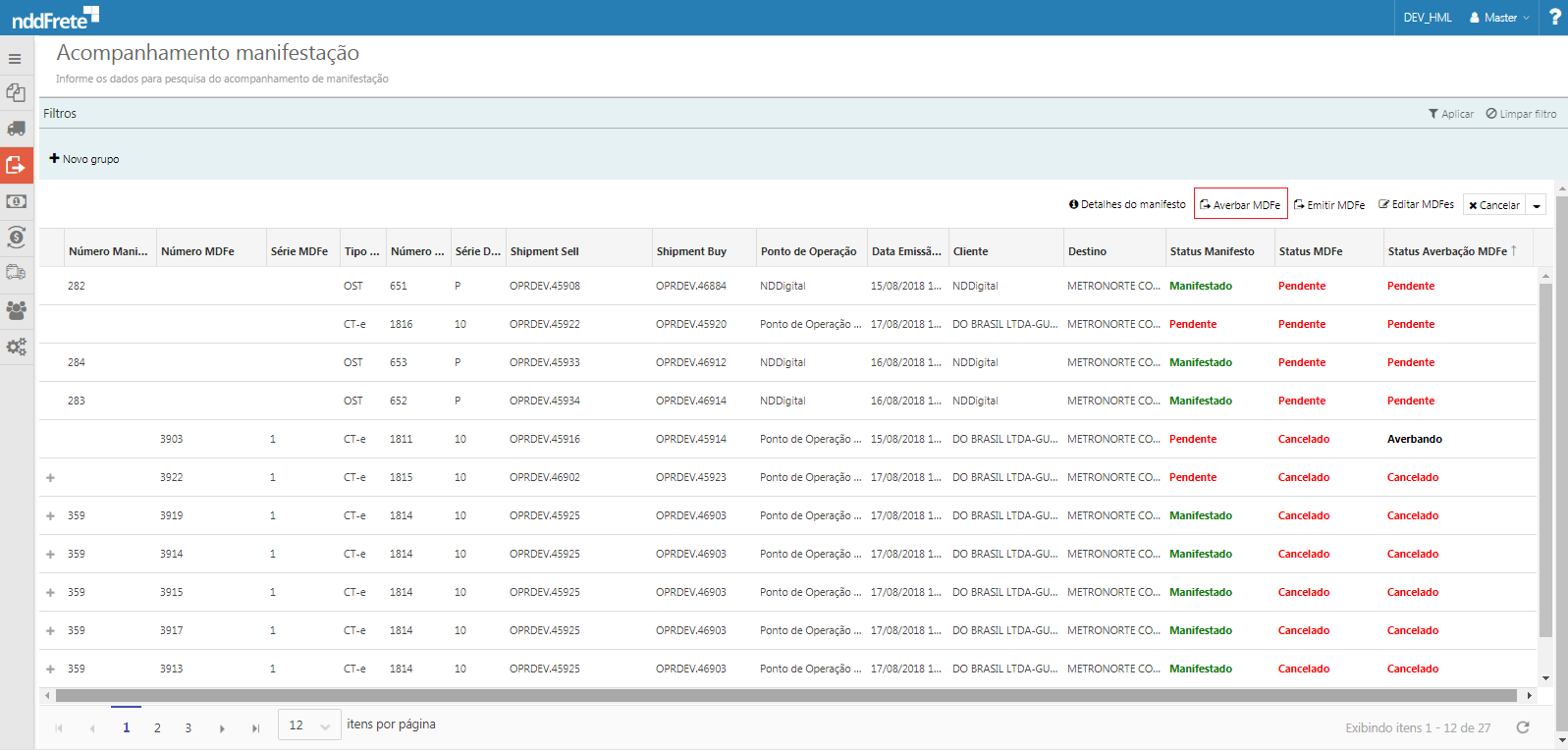 •Status MDF-e averbação MDF-e