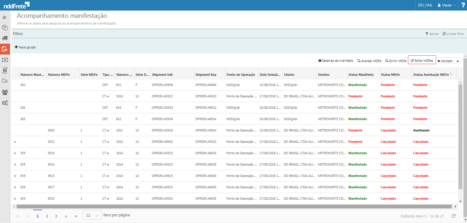 localizada acima da grid, permite editar os manifestos de documentos fiscais eletrônicos em aberto.