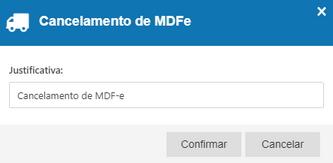 Ao solicitar o cancelamento de MDF-e deve-se informar a justificativa de cancelamento.