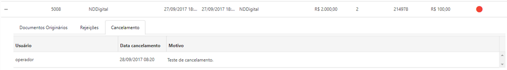 •Cancelamento - Para o caso de DPS cancelado, exibe a justificativa do cancelamento, data do evento e o usuário que solicitou.