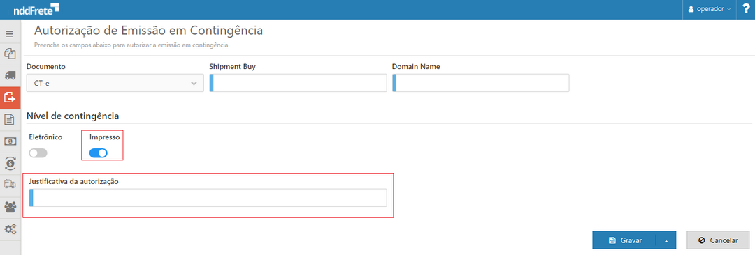 •Domain Name - Nome de domínio do shipment buy, a ser autorizado para emissão em contingência.