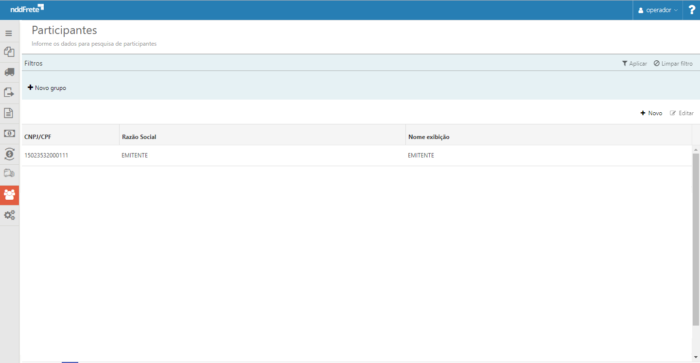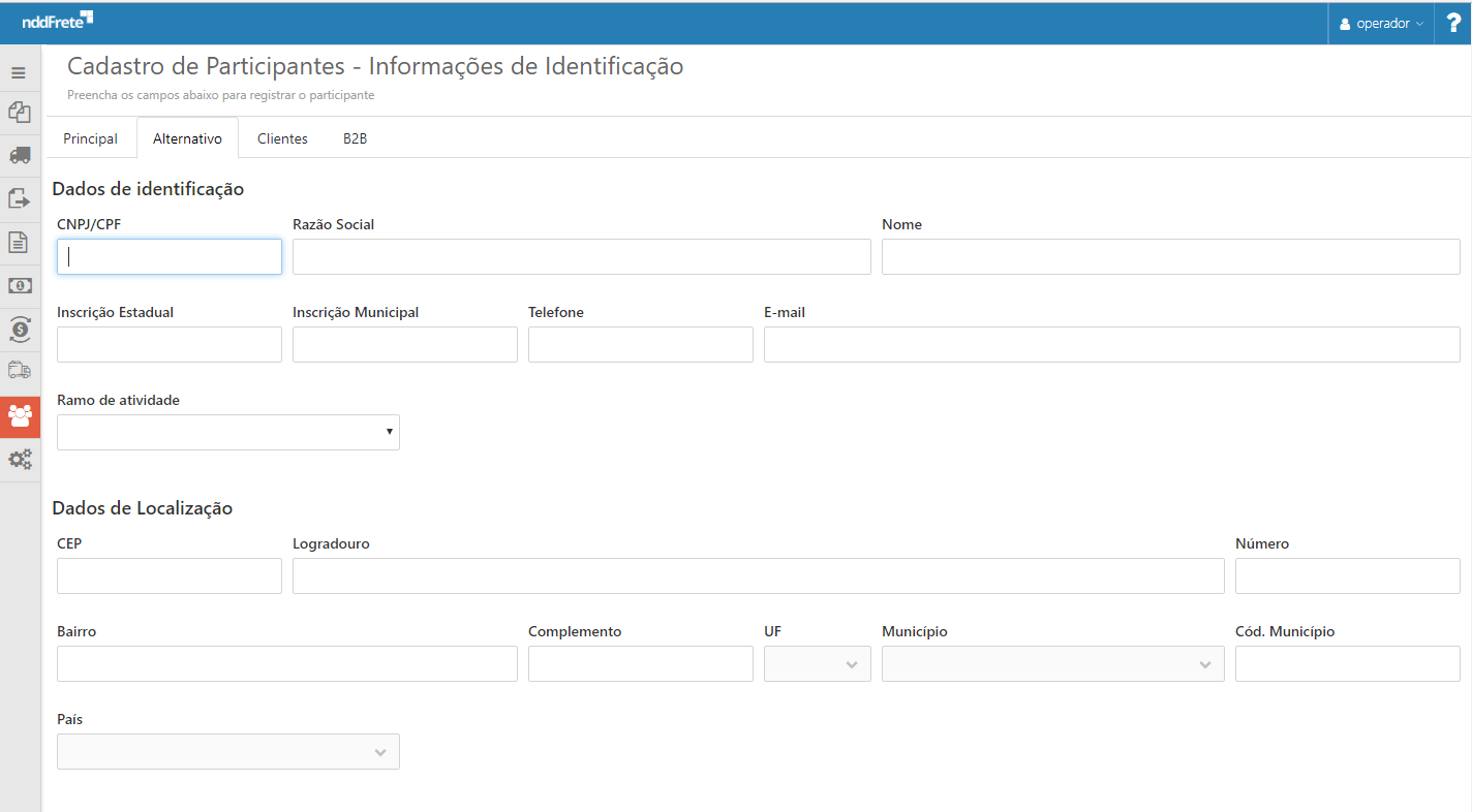 Para acessar a guia Cadastro de Participante navegue entre os menus: Principal>Participantes da Operação>Cadastro Participante