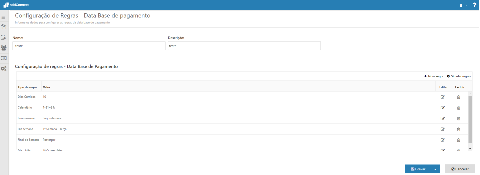 Visualização das Regras de Data Base de Pagamento |