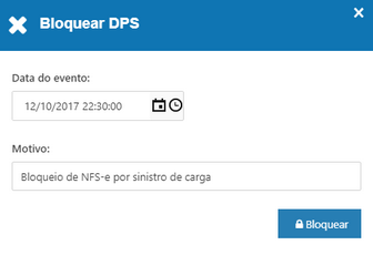 localizada acima da grid, permite realizar o bloqueio de DPS por motivo de sinistro de carga enquanto, a NFS-e não estiver em uma fatura fechada, esta pode ser bloqueada para pagamento.