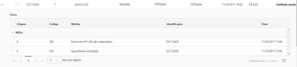 •MDF-e com falha - Enviado para SEFAZ e houve críticas;