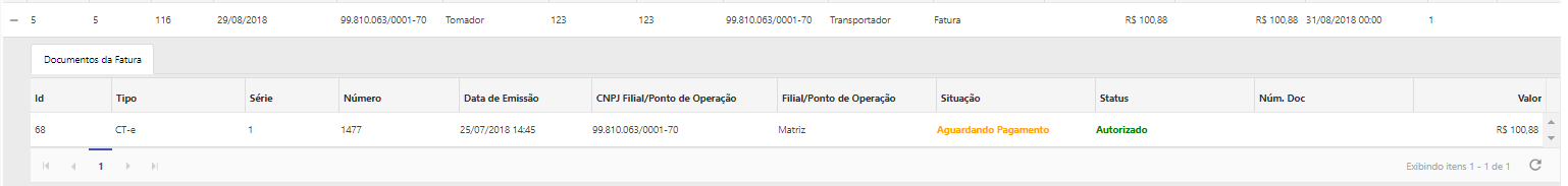 Para visualizar os documentos da fatura, clique no botão +, disponível em cada registro.