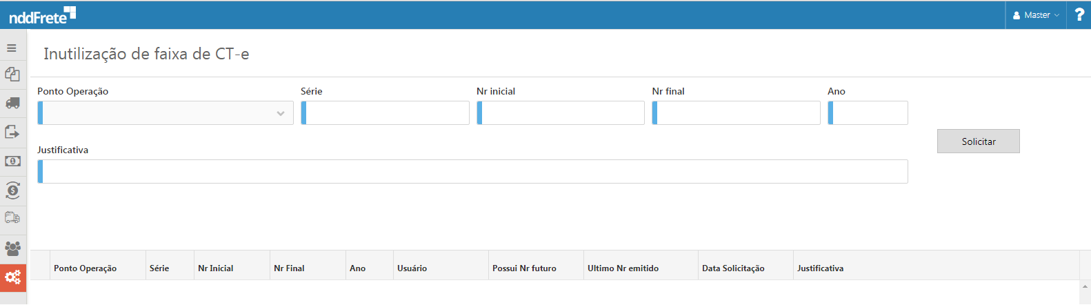 Na aba "Inutilização de faixa de CT-e", é possível cadastrar as faixas de CT-e que serão inutilizadas: