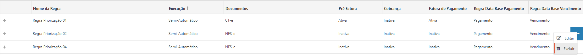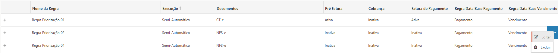 •Editar: Permite a edição de uma regra específica para realização dos ajustes necessários;