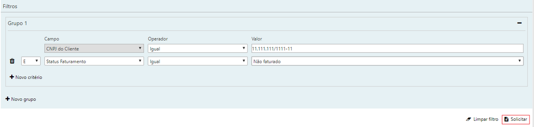 •CNPJ do Cliente - CNPJ do cliente do DPS, obrigatório informar um CNPJ, pois os DPSs para o relatório devem ser todos do mesmo cliente.