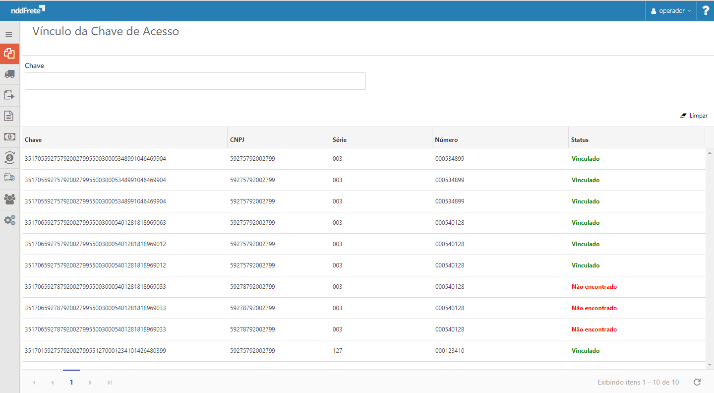 A funcionalidade "Vínculo Chave de Acesso" tem como objetivo verificar a existência de notas sem chave de acesso e vincula-las as suas respectivas chaves.