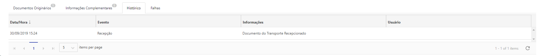•Documentos Originários - Essa aba apresentará todos os Documentos Originários vinculados ao seu respectivo Documento de Transporte.