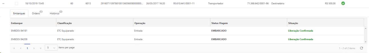 •Embarques - Essa aba apresentará os embarques relacionados ao documento originário.