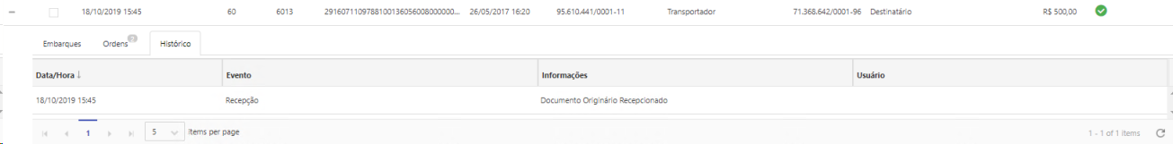 Nesta tela o usuário pode verificar todos os documentos do originários recepcionados.