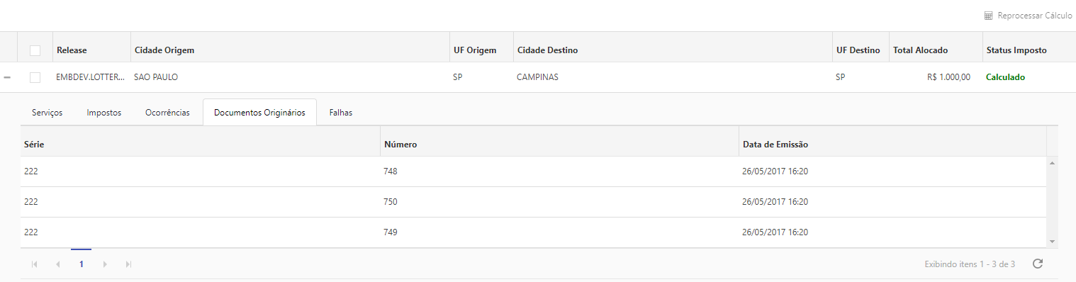 Caso o status do imposto for igual à Falha no cálculo, é possível realizar o reprocessamento do cálculo.
