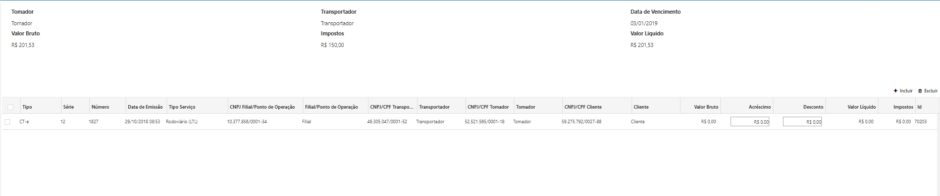 •Antecipação de Taxas: Antecipação de taxas relacionadas ao transportador da Fatura.