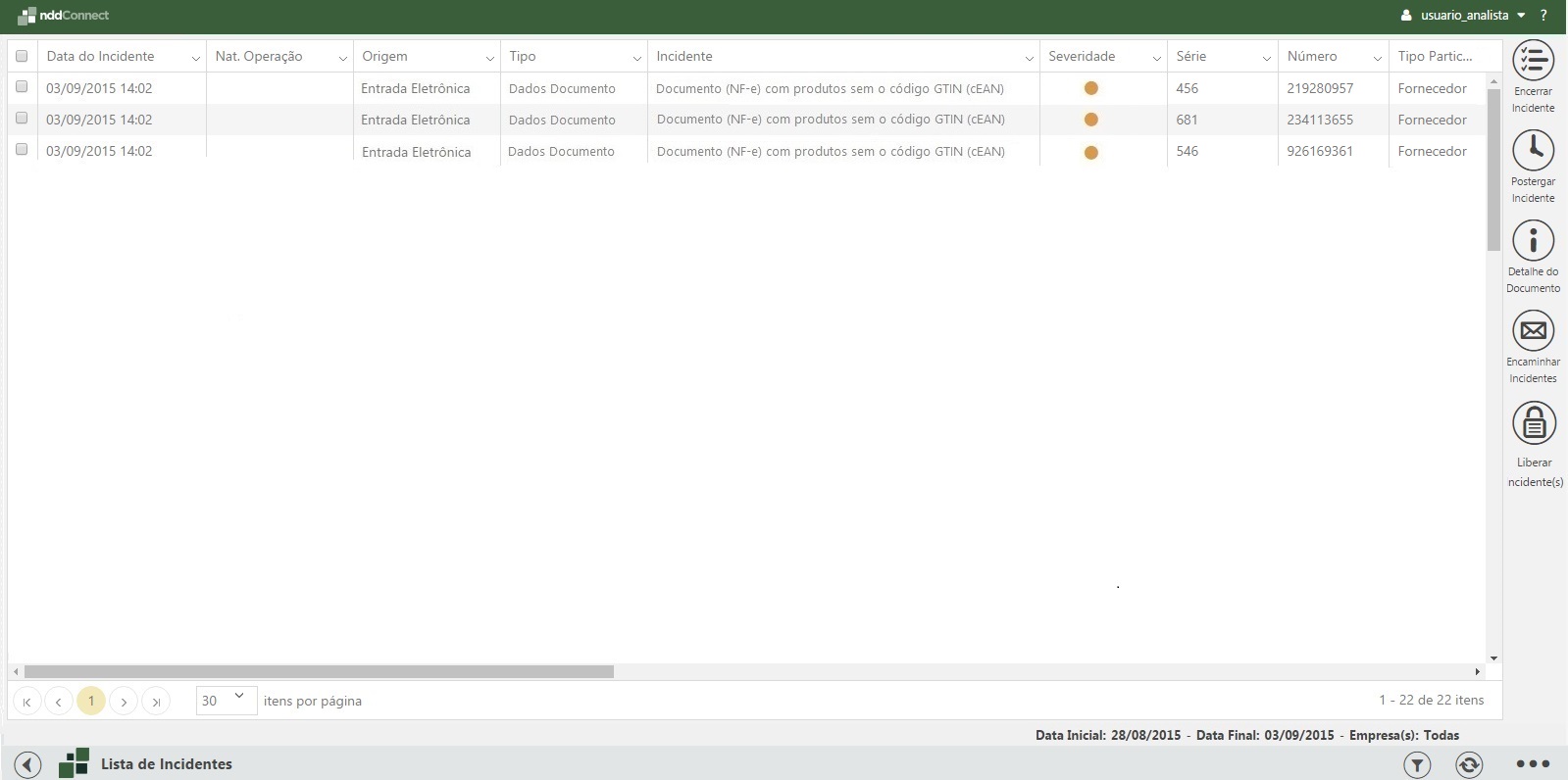 Origem que tem como objetivo indicar possíveis problemas relacionados à recepção do documento fiscal, seja este NFe, CTe ou NFSe.